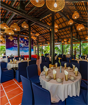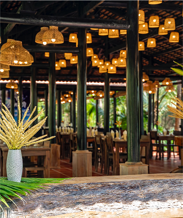 Tại Hòn Bà, mỗi bữa ăn là một trải nghiệm tinh tế trong không gian ngập tràn thiên nhiên. Nhà hàng được thiết kế mở, hướng về khuôn viên xanh mát với cây cối nhiệt đới. Từng bàn tiệc đều được chăm chút kỹ lưỡng, mang lại cảm giác gần gũi mà vẫn đặc biệt – lý tưởng cho những buổi sum vầy bên người thân hay những buổi tiệc riêng tư đầy thi vị.