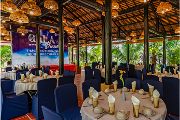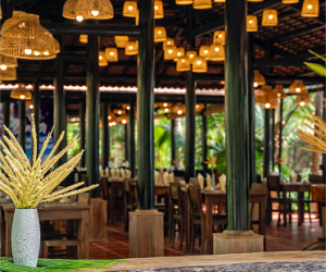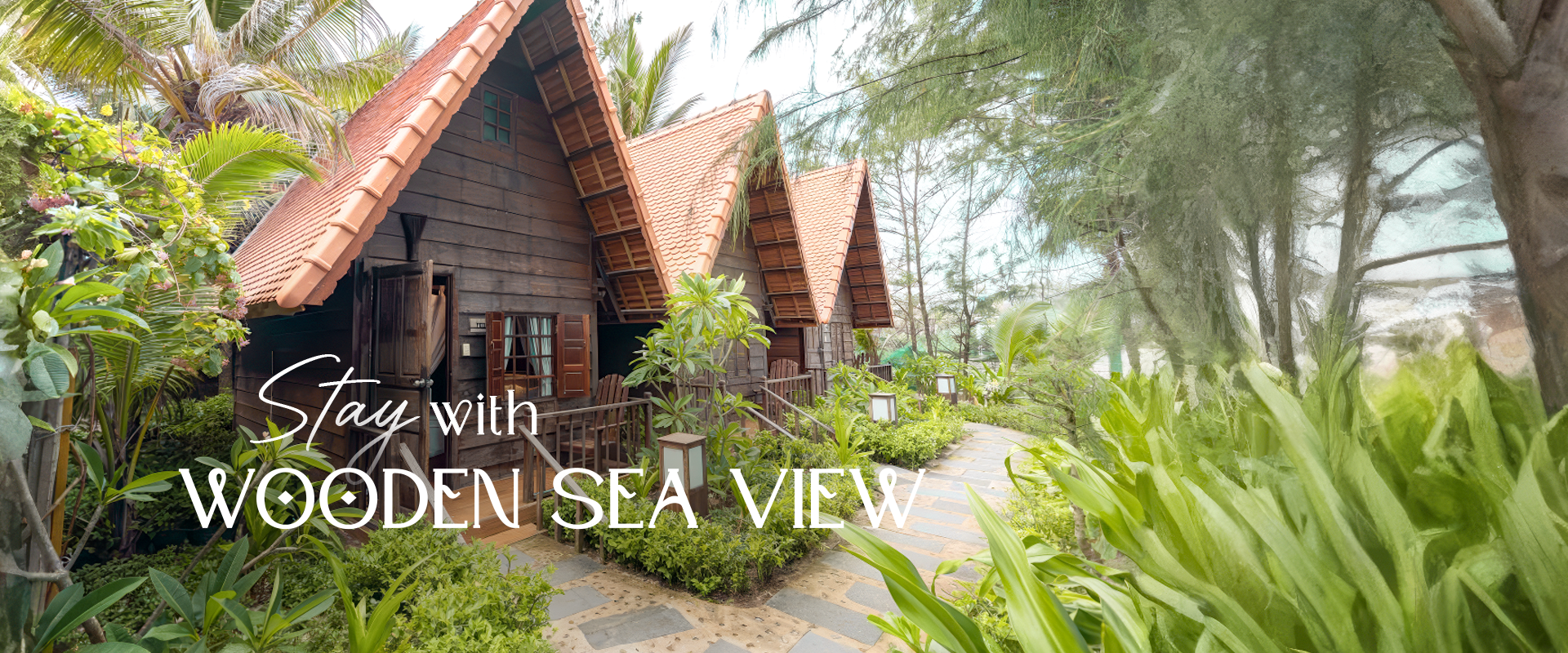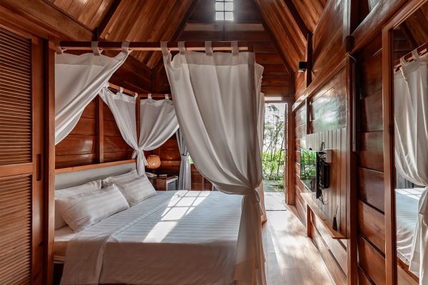 Ẩn mình trong khu vườn rợp bóng cây, phòng gỗ hướng vườn là lựa chọn lý tưởng cho những ai tìm kiếm sự riêng tư, nhẹ nhàng và thư giãn tuyệt đối. Không gian bungalow gỗ ấm cúng, bao quanh là hàng dừa cao vút, hoa cỏ đua nhau khoe sắc tạo nên một bầu không khí trong lành và dễ chịu.