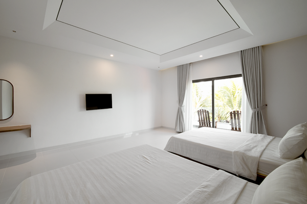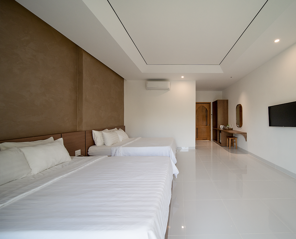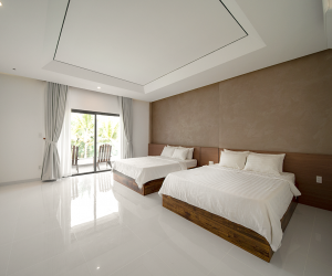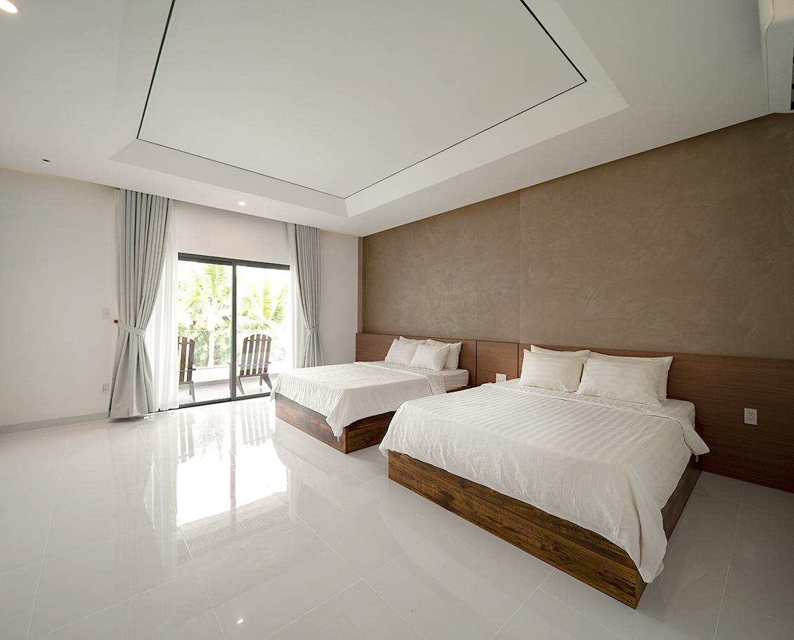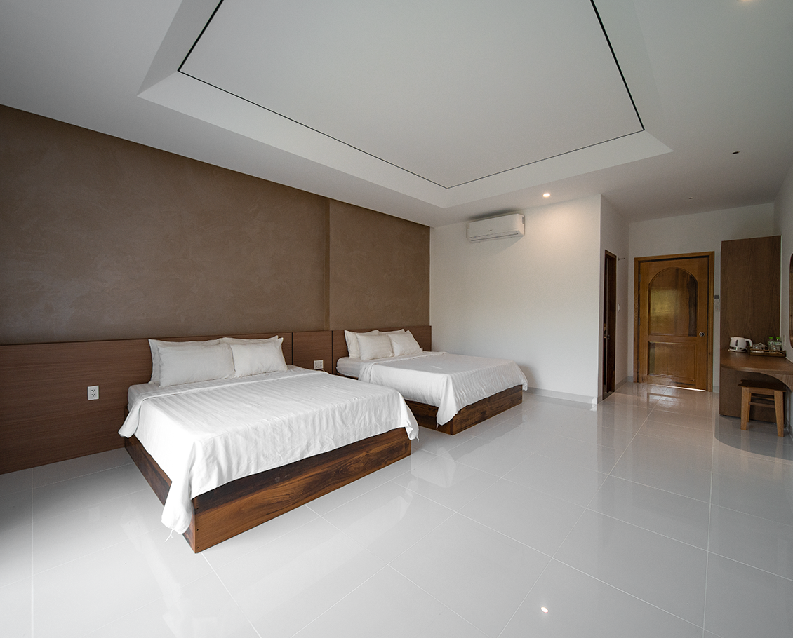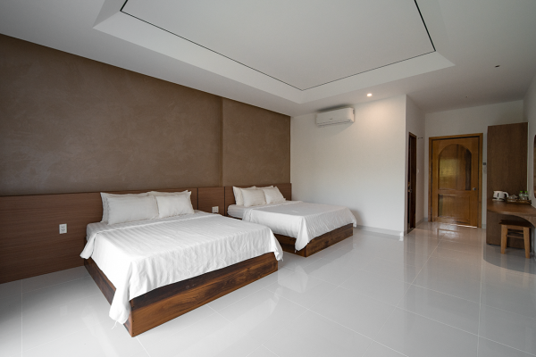 Phòng Deluxe là lựa chọn lý tưởng cho những ai tìm kiếm sự riêng tư và thoải mái. Không gian rộng rãi với 2 giường lớn, nội thất gỗ ấm cúng, ánh sáng tự nhiên và đầy đủ tiện nghi – thích hợp cho kỳ nghỉ thư giãn cùng người thân hoặc bạn đồng hành.