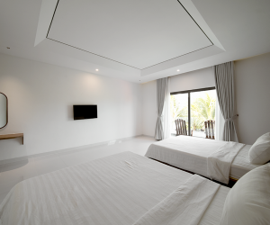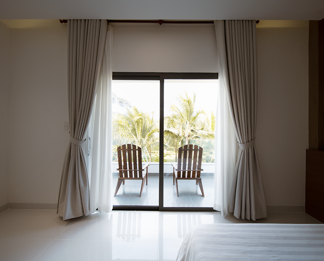 Phòng Breeze sở hữu thiết kế tối giản hiện đại, mở ra tầm nhìn xanh mát với ban công hướng vườn và ánh sáng tự nhiên tràn ngập không gian.